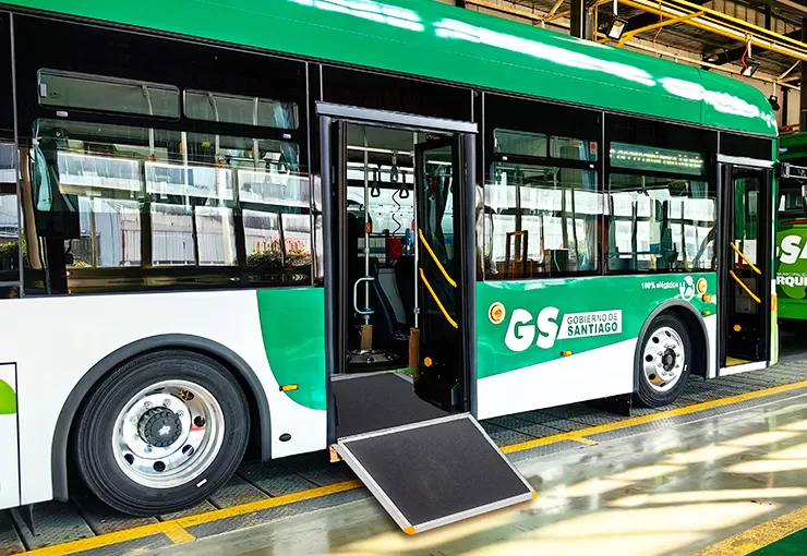 Reglamentos unificados ECE R107 para la aprobación de vehículos de las clases M2 y M3 con respecto a los aspectos estructurales generales. La pendiente de las rampas para pasajeros con movilidad reducida (3,5) entre pasillos, pasadizos, o cualquier asiento prioritario o zona de silla de ruedas, así como la pendiente de al menos una entrada y salida o acceso mixto, debe ser ≤ 8%. Todas estas áreas inclinadas deben tener una superficie antideslizante.